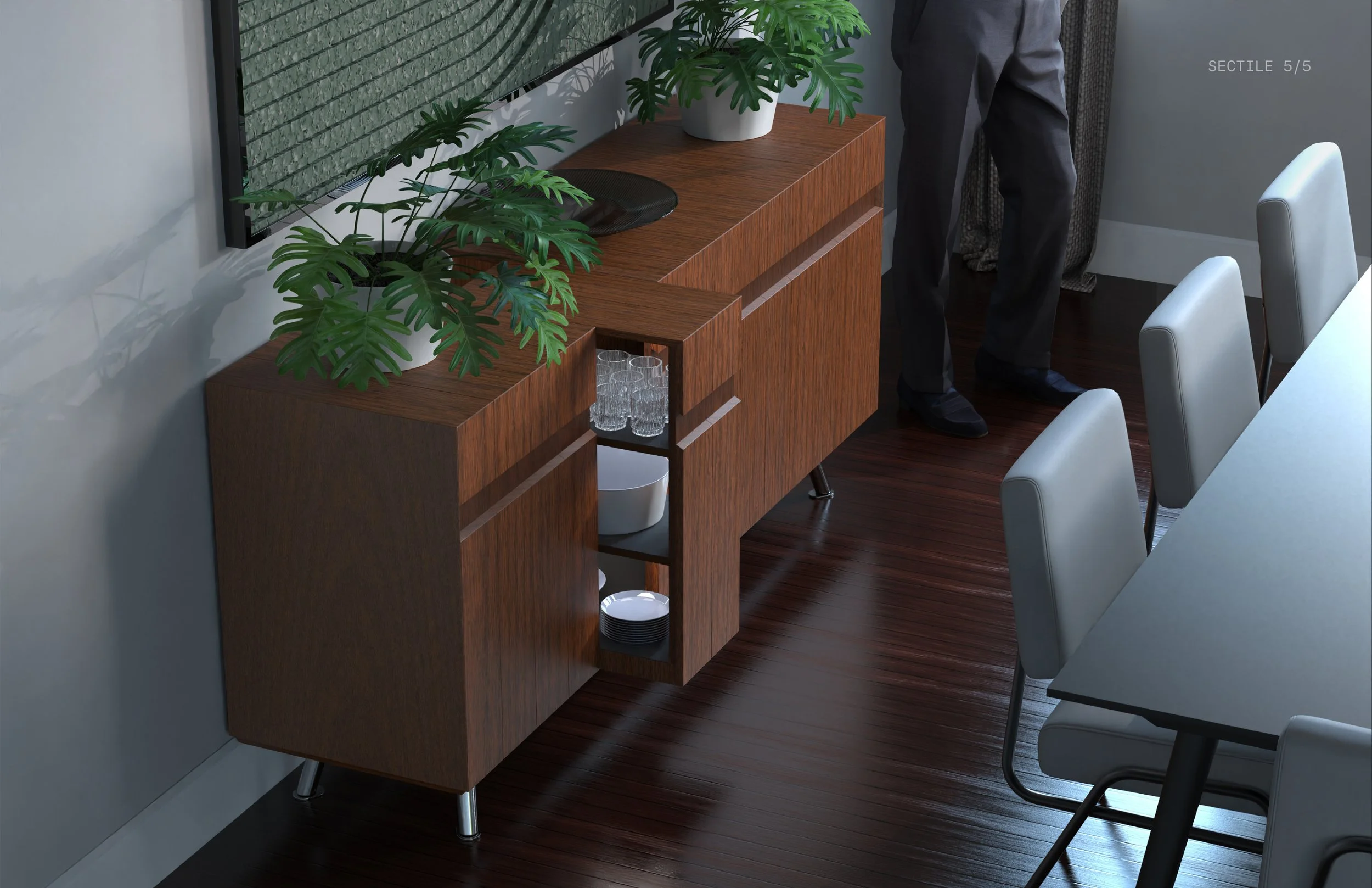 Originally, this design was for the Philadelphia Museum of Art’s Collab Competition, where it was recognized as a notable design. The prompt this year was to create a design concept for a sideboard, cabinet, or console with some inspiration from themes in the work of Sebastian Errazuriz.