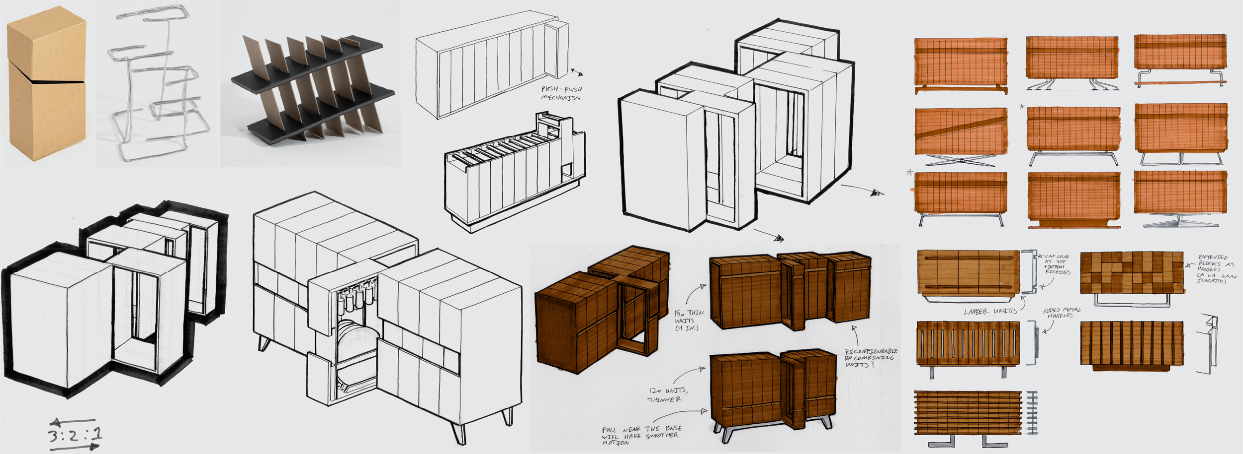 Early on, I started exploring the idea of a sideboard with vertical drawers. I found the rhythm to be an interesting opportunity so I sketched and prototyped variations on the idea.